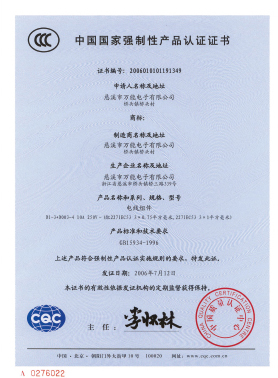 產品已通過中國CCC認證、美國UL認證、德國VDE認證、東亞和北美等數十個國家認證